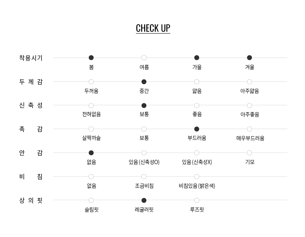 이너웨어 또는 단품으로 착용 가능하며, 단정한 넥 라인과 베이직 핏으로 깔끔하고 스마트한 느낌을 선사합니다.