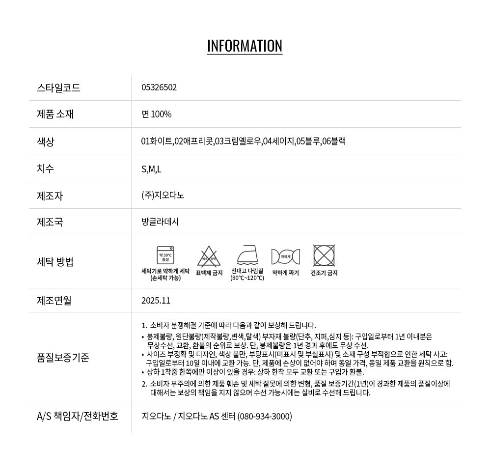 • 교환 진행시 배송비 5,000원 주문자 성함으로 입금 부탁드립니다(신한은행:267-05-028523 (주)지오다노)