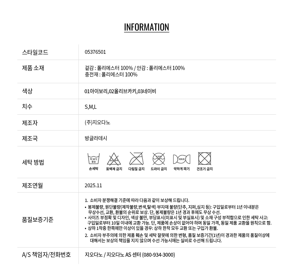 • 교환 진행시 배송비 5,000원 주문자 성함으로 입금 부탁드립니다(신한은행:267-05-028523 (주)지오다노)