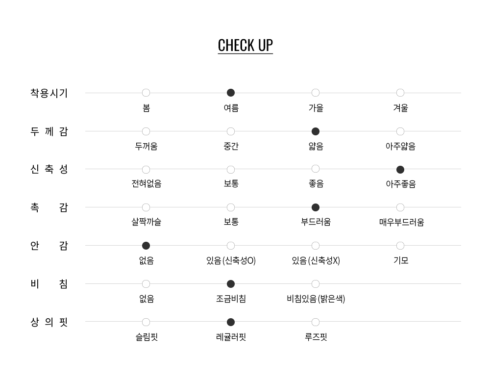 편안하게 입기 좋은 기본핏으로 되어 있으며, 다양한 컬러감으로 여름시즌 단품이나 이너용 등으로 다양하게 코디 하시기에 좋습니다.
