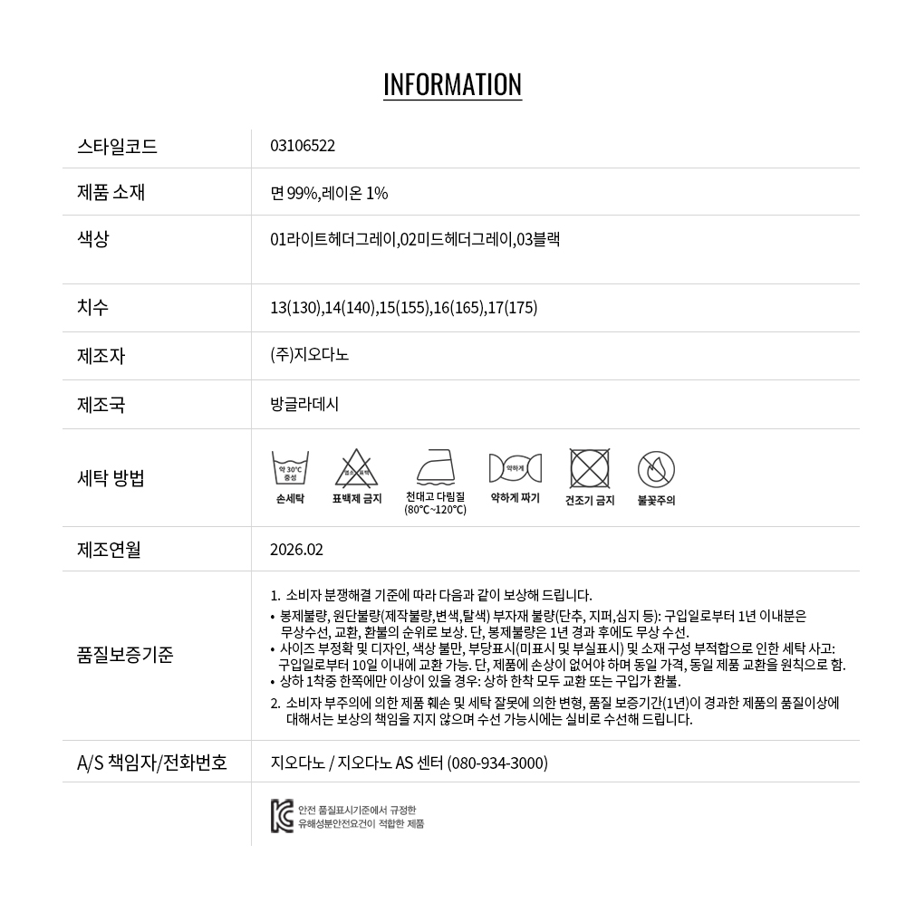 20수 면 100% 미니테리 소재를 사용해 부드러우면서도 탄탄한 착용감을 제공하며, 가볍고 쾌적하게 착용할 수 있습니다. 다양한 티셔츠와 쉽게 매치 가능해 데일리룩과 등하교룩으로 활용하기 좋은 아이템입니다.