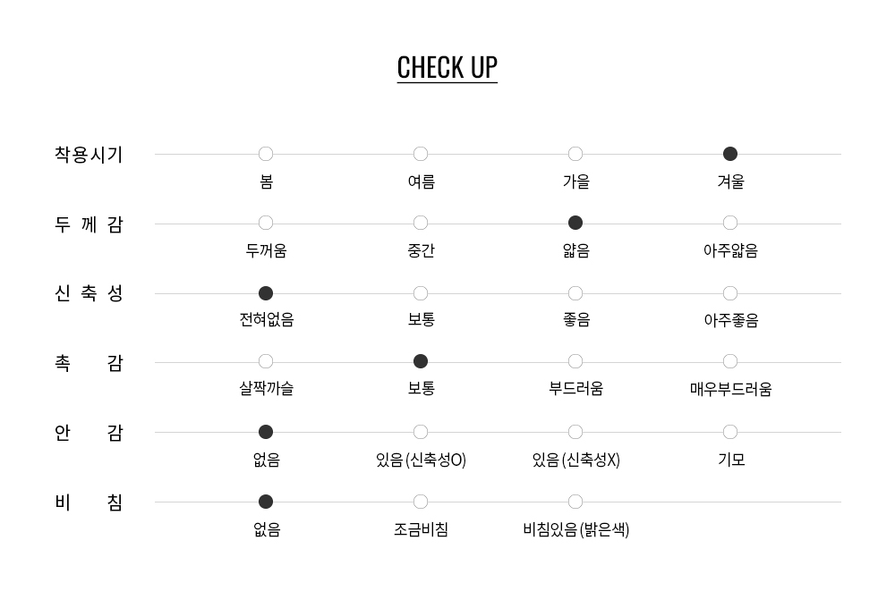 또한, 은은한 광택감과 고급스러운 질감으로 피부에 닿는 느낌이 편안하고 우수한 착용감을 제공합니다.