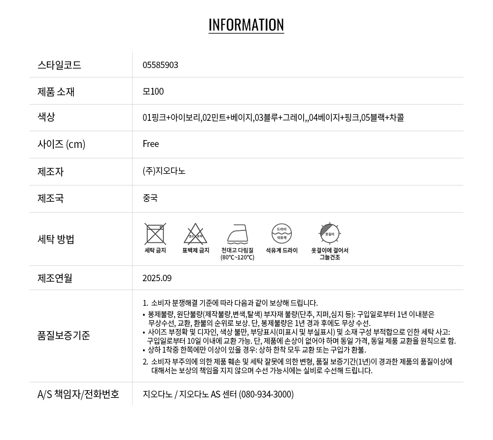 • 교환 진행시 배송비 5,000원 주문자 성함으로 입금 부탁드립니다(신한은행:267-05-028523 (주)지오다노)