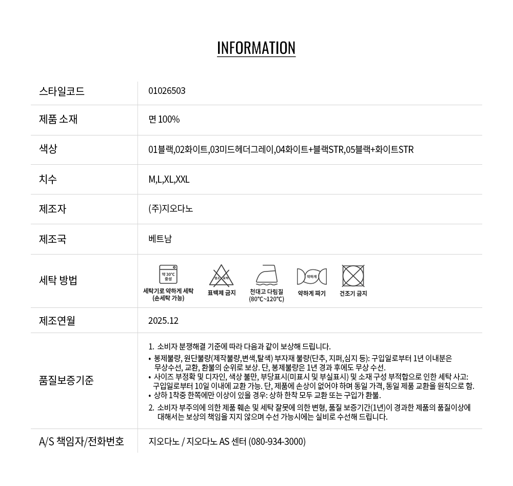 코튼 특유의 내추럴한 터치감과 우수한 내구성으로 오래도록 편안하게 착용할 수 있습니다.
