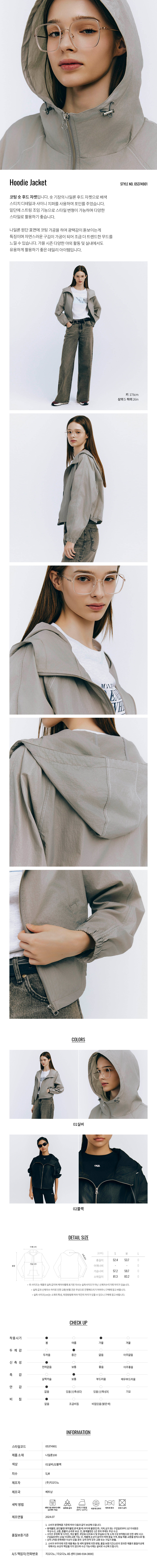밑단에 스트링 조임 기능으로 스타일 변형이 가능하며 다양한 스타일로 활용하기 좋습니다