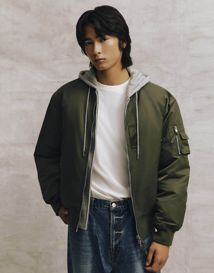 탈부착 가능한 후드로 레이어드 스타일을 연출할 수 있으며 후드를 탈착하여 베이직한 블루종으로도 활용 가능합니다.
