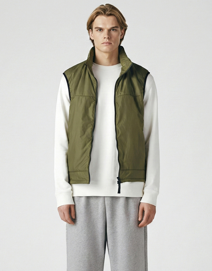 립스탑 조직의 고밀도 나일론 원단을 사용한 목넥 베스트입니다.