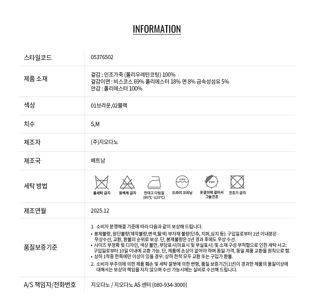• 교환 진행시 배송비 5,000원 주문자 성함으로 입금 부탁드립니다(신한은행:267-05-028523 (주)지오다노)