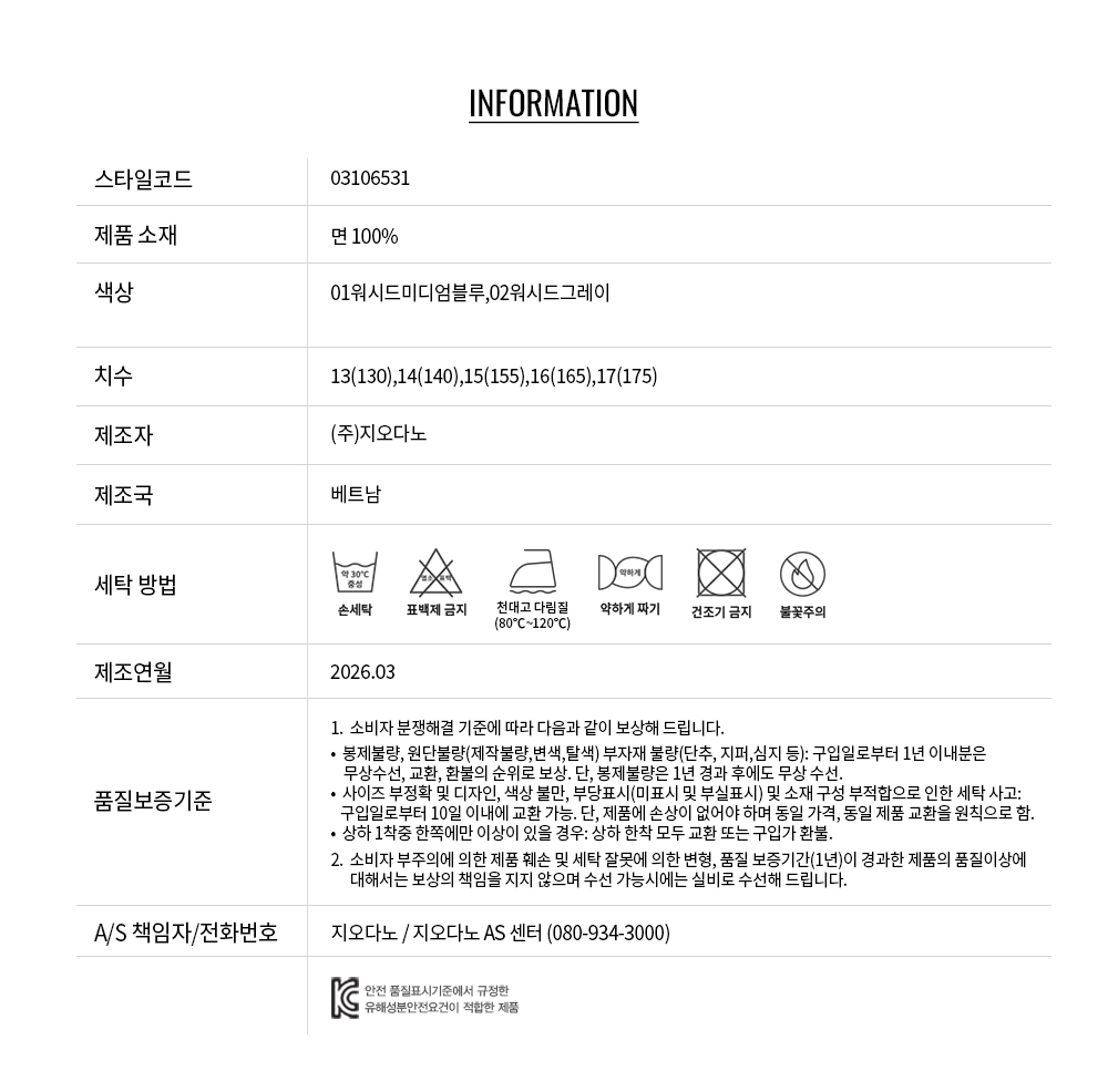 • 교환 진행시 배송비 5,000원 주문자 성함으로 입금 부탁드립니다(신한은행:267-05-028523 (주)지오다노)