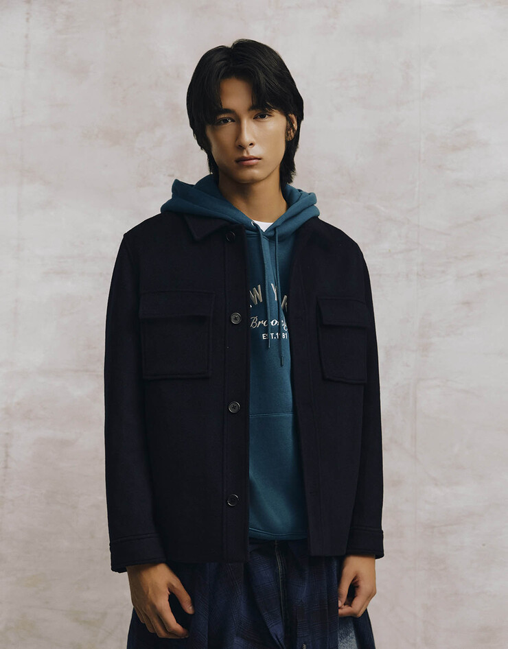 남자 울 포켓 셔켓