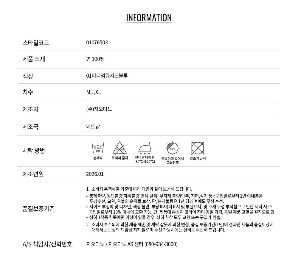 • 교환 진행시 배송비 5,000원 주문자 성함으로 입금 부탁드립니다(신한은행:267-05-028523 (주)지오다노)