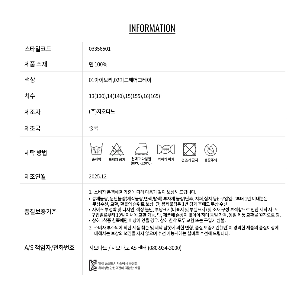 • 교환 진행시 배송비 5,000원 주문자 성함으로 입금 부탁드립니다(신한은행:267-05-028523 (주)지오다노)
