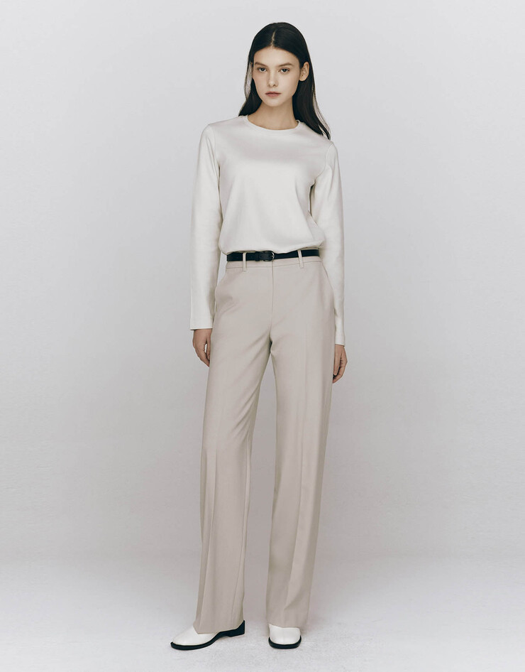 전체적으로 힙부터 밑단까지 여유감있게 떨어지는 실루엣으로 발목을 덮은 긴 기장의 멋스러운 일자핏 슬랙스 입니다