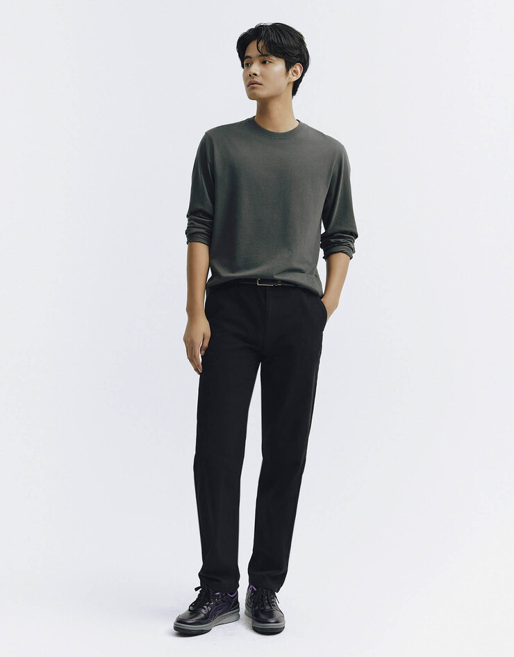 클래식한 실루엣의 코튼 테이퍼드핏 치노 팬츠입니다.