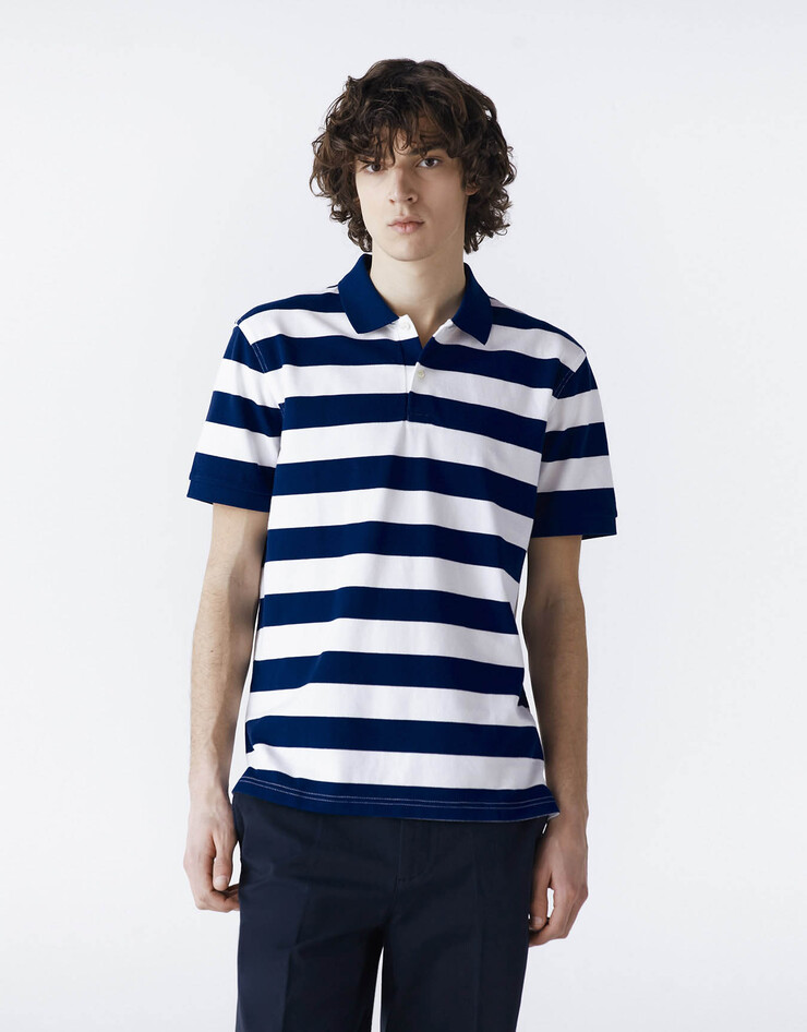 볼드한 스트라이프 패턴이 돋보이는 피케 폴로 티셔츠입니다.