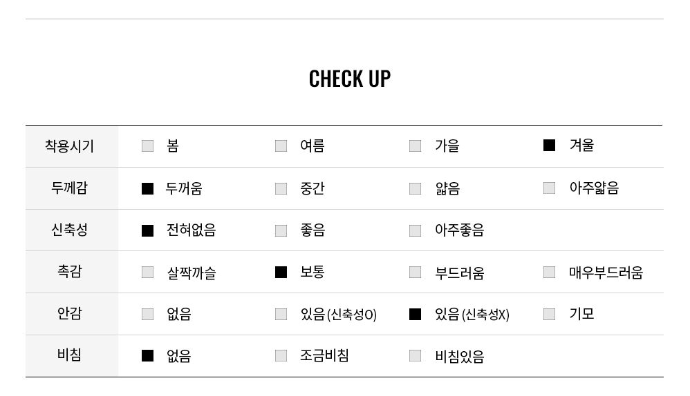 생활 방수 가능한 원단을 사용하여 눈, 비 등의 수분 유입을 막아 보온성이 탁월하며 방풍 효과 또한 뛰어나 FW 시즌 활용도가 높습니다.