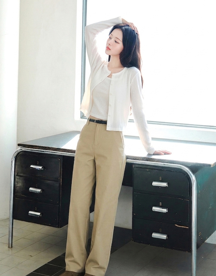 봄 시즌 다양한 상의와 쉽게 매치되어 데일리·캐주얼·출퇴근 모두 활용 가능한 베이직 실루엣이며,