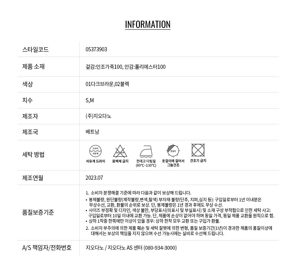 • 교환 진행시 배송비 5,000원 주문자 성함으로 입금 부탁드립니다(신한은행:267-05-028523 (주)지오다노)