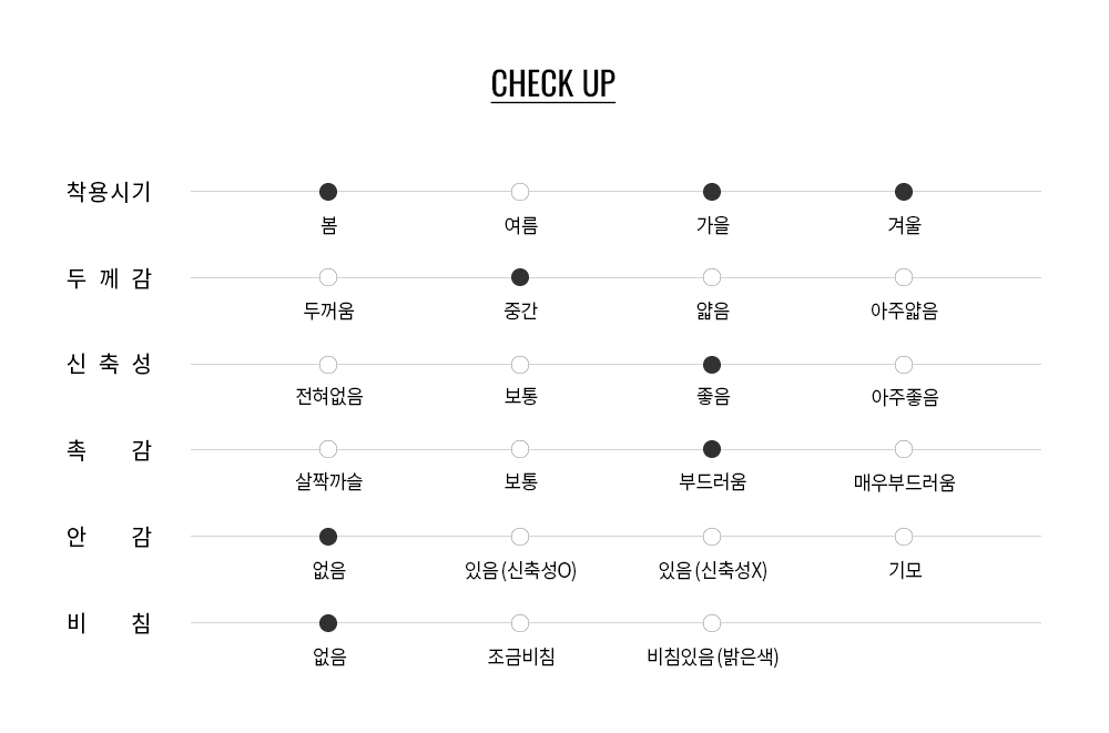 드레이프성이 우수하고 표면촉감과 광택이 우아합니다.